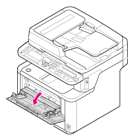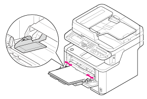 When adding paper, take the paper in the MP tray out, straighten the edges of both stacks of paper, and then load them.